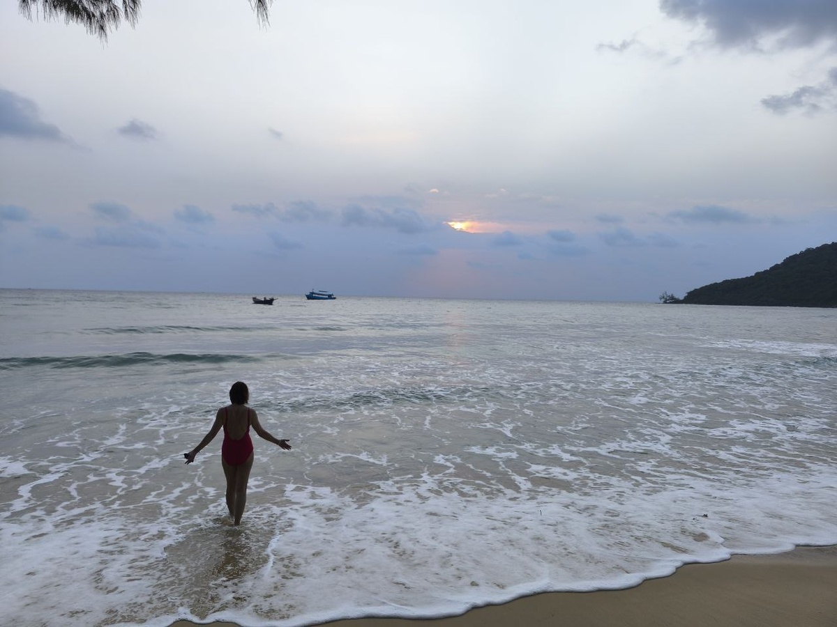 🥶 Зима, 8 февраля. Мёрзнете? А у нас в Камбодже сегодня так. Солнце, кристально жёлтый песок, бирюзовая вода, морюшко, тёплое, как ванная. А сейчас мы уже ужинаем.