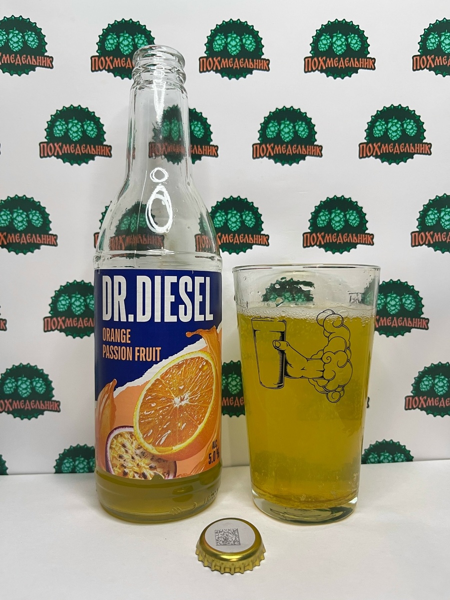 Статистика: пивной напиток нефильтрованный осветленный пастеризованный со вкусом и ароматом маракуйи и апельсина, алкоголь - 5.0% об., действительный экстракт - 9.0%, состав: вода питьевая очищенная, солод пивоваренный ячменный, глюкозно-фруктозный сироп, сахар, регулятор кислотности - лимонная кислота, комплексная пищевая добавка (эмульгатор - эфиры глицерина и смоляных кислот, краситель - каротины, антиокислители: аскорбиновая кислота, альфа-Токоферол, аскорбилпальмитат, консерванты: сорбат калия, бензоат натрия), ароматизаторы пищевые, хмелепродукты. Объём: 0,4 л Дата розлива: 11.01.2026 Изготовитель: ООО «Объединенные Пивоварни - Холдинг», Россия, г. Санкт-Петербург, филиал «Волга» ООО «ОПХ», Россия, Нижегородская область, г. Нижний Новгород По-братски: зашел в «Бристоль» и увидел линейку пива от бренда Dr. Diesel. И понял! Я ж после их обновления не пил ни одной из 4-х новых вкусов! Надо это исправлять, подумал я и взял вот этот вкус. Кстати, бутылочка то не фирменная, а такая же,