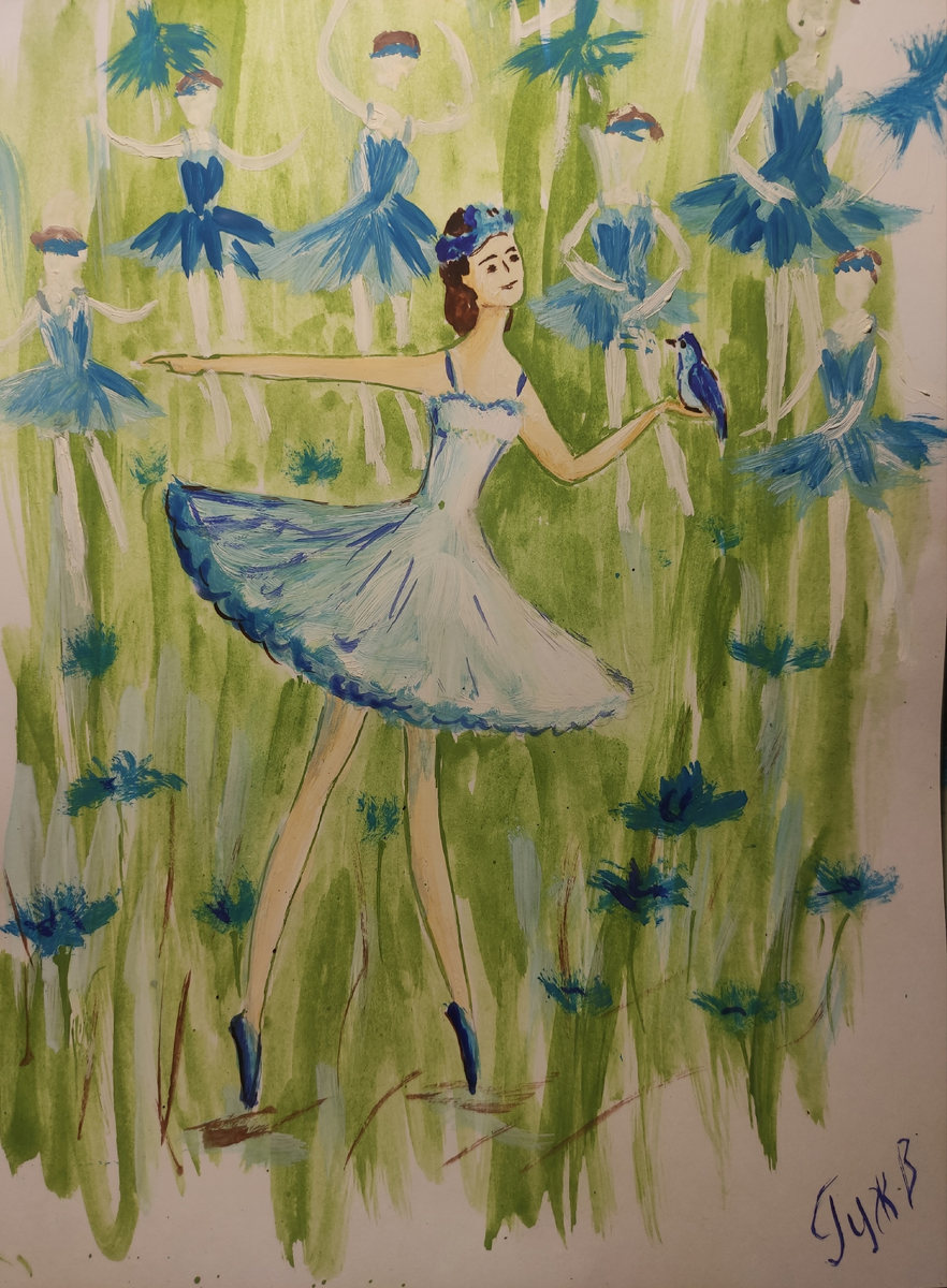 Шёл, шёл, смотрит - стоят тридцать три балерины, на птичек похожих – ножки длинные, тонкие, юбки пышные, лёгкие, движения грациозные, головки изящные наклоняют, что-то щебечут по своему, ручками, как крылышками взмахивают.