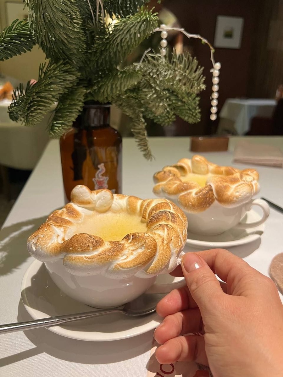 Только ради кофе в такой оригинальной подаче я готова собраться в путешествие куда угодно. Это так необычно! Это так красиво! Это так вкусно! Восторг в чистом виде! Оцените и вы подачу кофе с лимонной меренгой.😍🔥 Но обо всем по порядку! У ресторана, который я обязательно запланировала посетить в Рыбинске (да-да, из-за кофе с меренгой), на мой взгляд, весьма странное название, которое ассоциируется с быстрым питанием или какой-то бюджетной столовой. Отдельное внимание на приборы. «Супберри» — бери суп, ставь его на поднос, по ходу движения захвати хлеб, салфетки и столовые приборы, потом поищи свободное место в зале, а после обеда не забудь убрать за собой — именно такие ассоциации навевает название. Но, увидев в отзывах фото кофе с меренгой и почитав отзывы, я всё же забронировала там столик для всей нашей честной компании. И не прогадала! Несмотря на название, это заведение оказалось полноценным рестораном с потрясающей едой, белыми скатертями и аутентичным интерьером. Ресторан «Суп