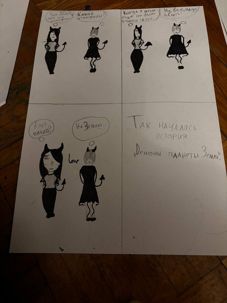 Наконец-то я вернулась к вам с комиксом, а то в последнее время одни арты да хуманизации. Комиксов так долго не было, потому что у меня закончилась бумага, а теперь приехала новая. Извините, за то, что фото не обрезала.