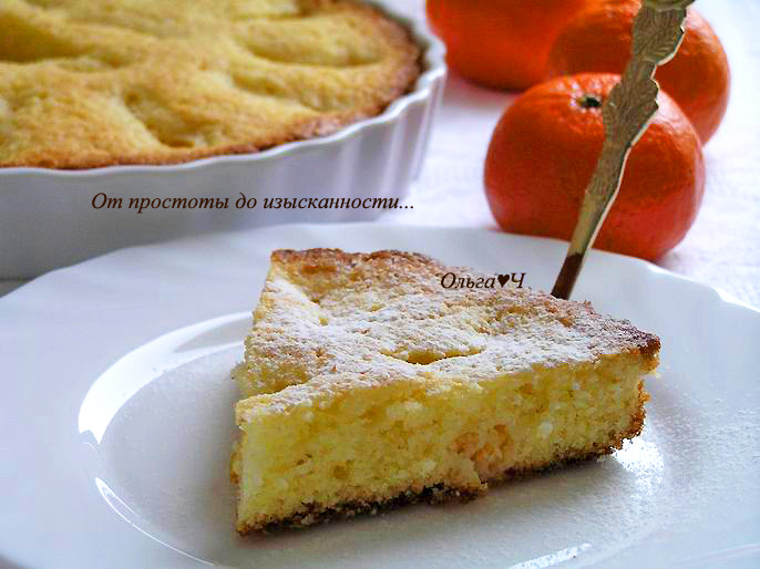 сахарная пудра Приготовление: Размягченное сливочное масло разотрите с сахарной пудрой, добавьте муку с разрыхлителем и ванилином, перемешайте. Яйца взбейте до пышной массы, добавьте в тесто. Перемешайте. Тесто выложите в смазанную маслом форму для выпечки, сверху разложите дольки мандаринов, слегка вдавите. Выпекайте при 180*С около 25-30 минут. Приятного аппетита! Вам также могут понравиться: