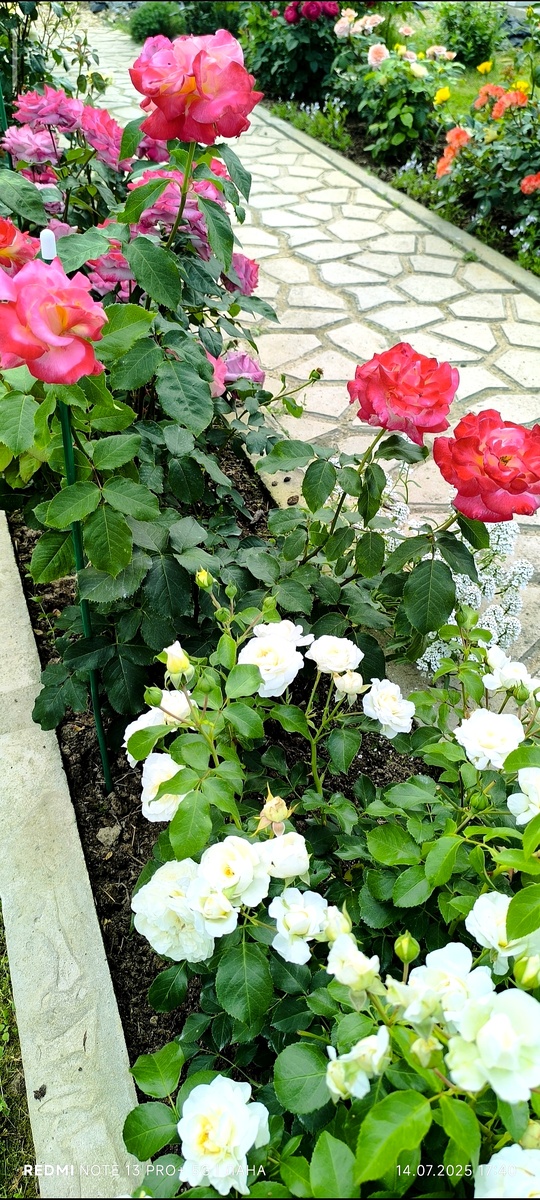 Розарий из 25 роз в более спокойных тонах «Нежное лето», ещё моложе, некоторым розочкам только второй год.