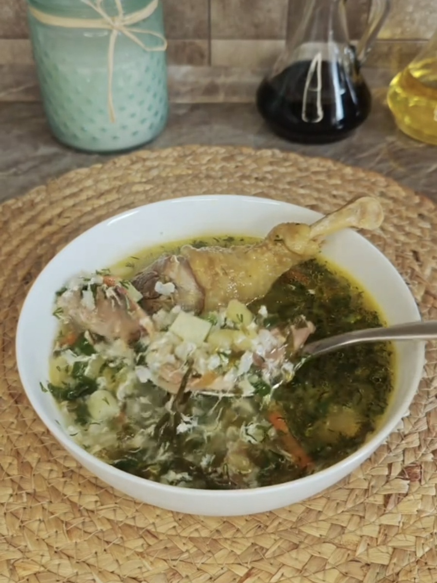 Суп получается ароматным и лёгким, с мягким мясом, нежным рисом и яркой кислинкой щавеля. Яичная паутинка делает бульон особенно красивым и насыщенным.