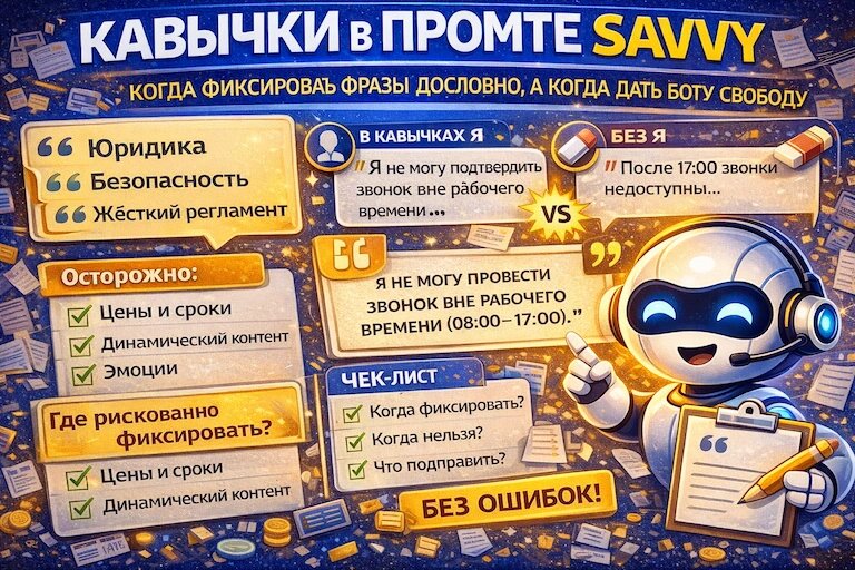 Кавычки в промте Savvy: когда фиксировать фразы дословно, а когда дать боту свободу