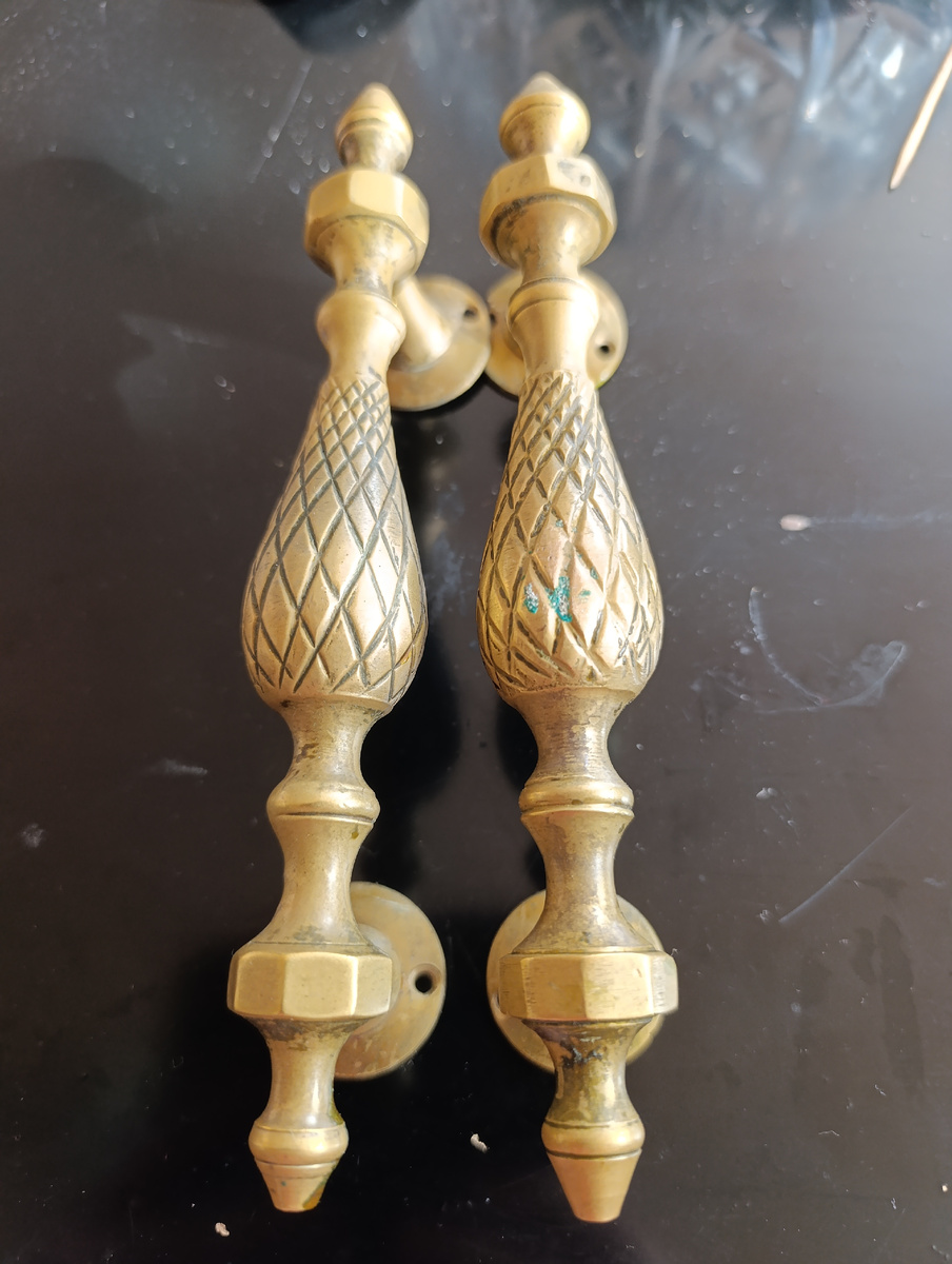 Замочила в удалителе краски и ручка легко очистилась. Латунная, красивой формы, основательная.