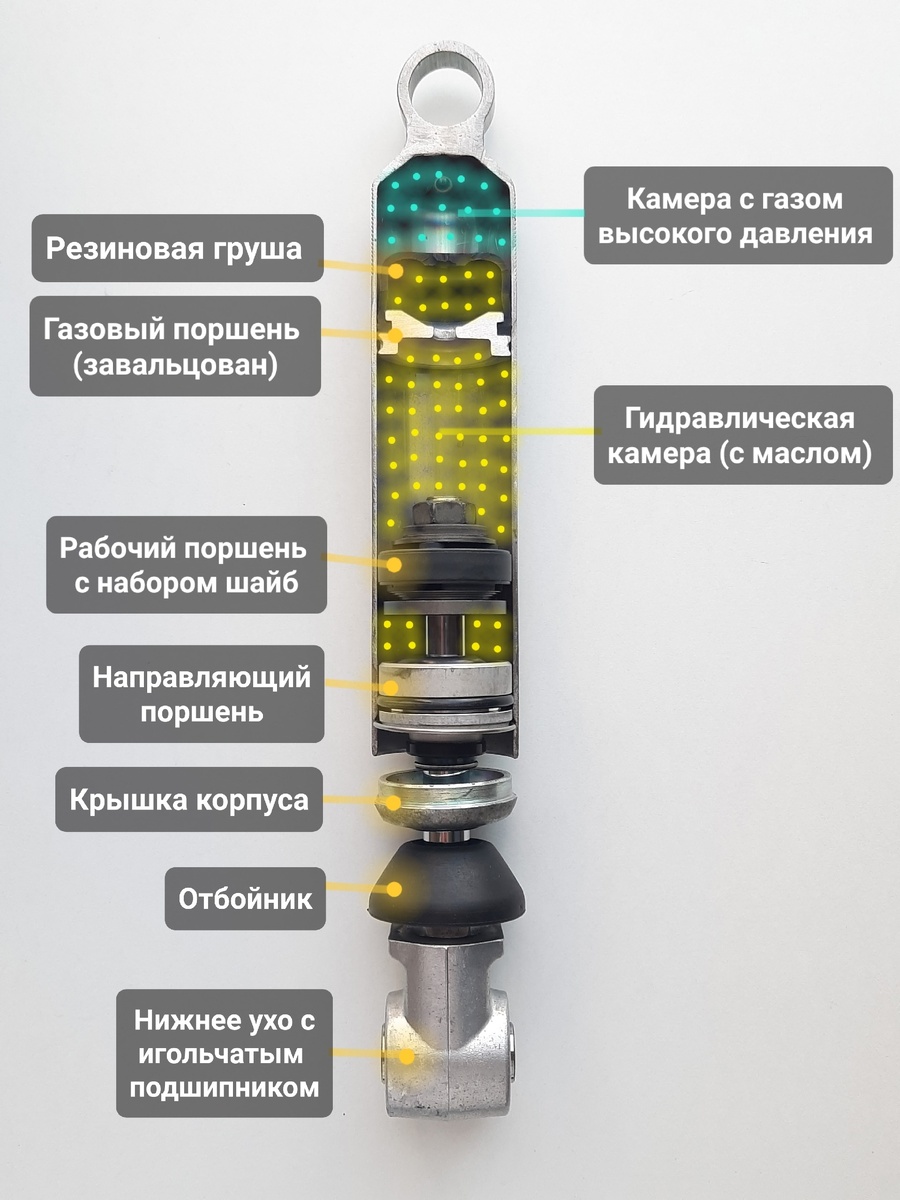 Несмотря на кажущуюся примитивность данного амортизатора, он не так уж и плох - как минимум наличием разделителя между газом и маслом (чего нет, к примеру в Suzuki SV650, Kawasaki ZZR400 и многих других мотоциклах, где используются эмульсионные амортизаторы - без разделения). Это принципиальный момент, благодаря которому масло не деградирует через 10-15-20 тысяч км, а позволяет работать амортизатору долгие годы. Пойдём сверху вниз. Без газовой прослойки (неважно в каком виде: под большим давлением и без него, в выносном бачке, в отдельной камере сверху как на NC, просто газ над маслом без разделения и тд) ни один амортизатор работать не будет. При сжатии внутрь корпуса входит шток и его объему нужно куда-то деваться. Жидкость (масло), как известно, не сжимается, значит она не может компенсировать этот объем. А вот газ ещё как может, для этого он и нужен в любом амортизаторе. ☝️Но это не единственная его функция. Высокое давление газа позволяет исключить кавитацию (крайне негативное явл