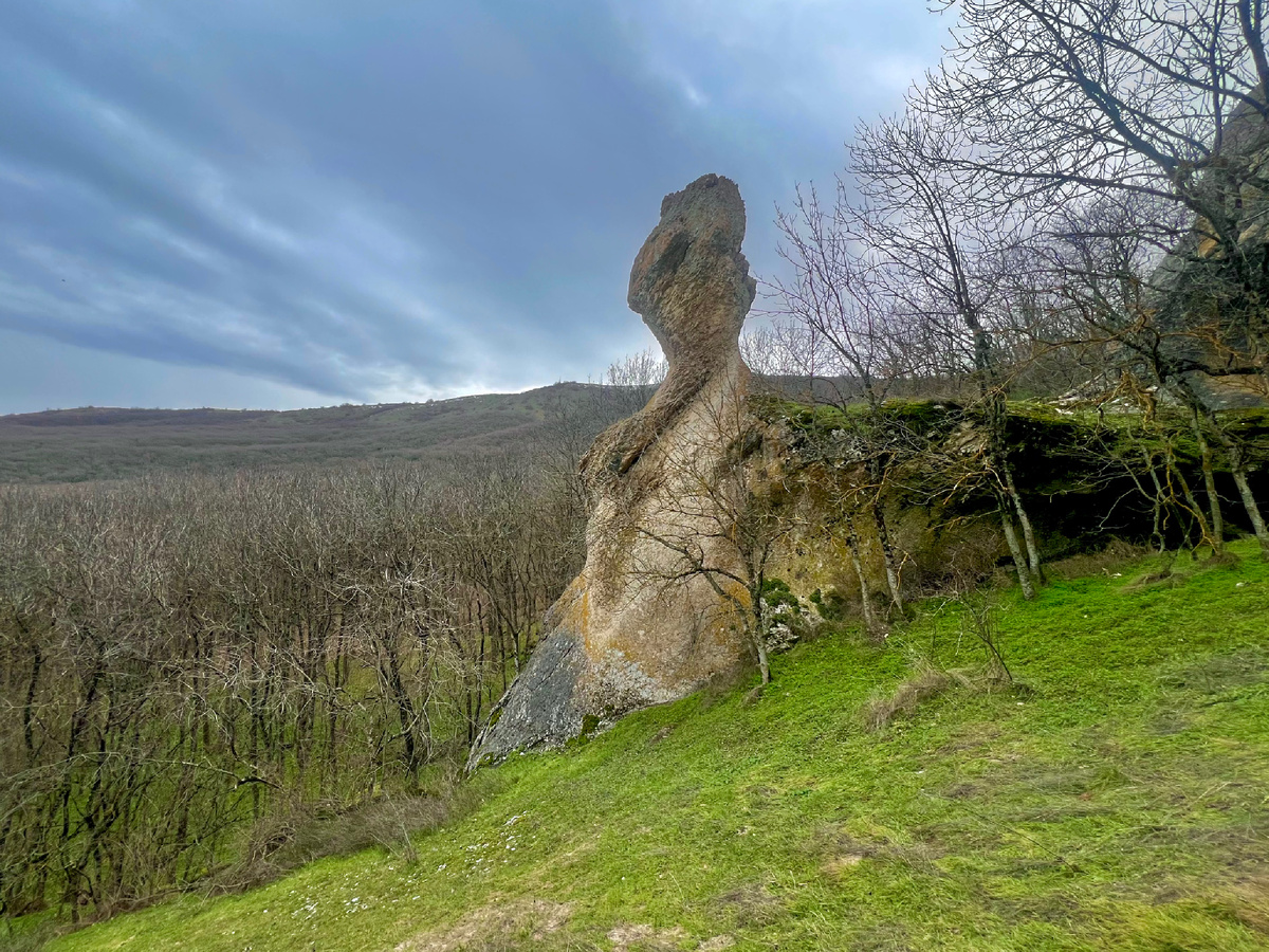 Это ориентир, который мы видели с расстояния около полутора километров. За нашей одинокой Скульптурой интересный грот.