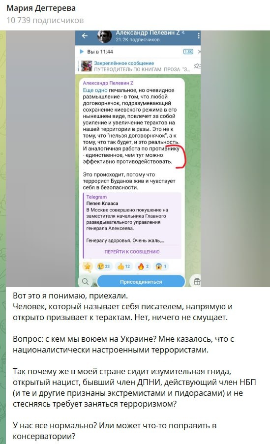 Мария Дегтерёва выступает против терактов, направленных на укропских командиров