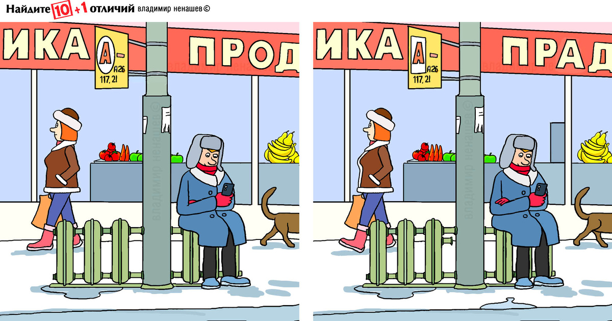 10+1 отличие для самых внимательных. Тест на внимание. Зима и отопление на остановках.