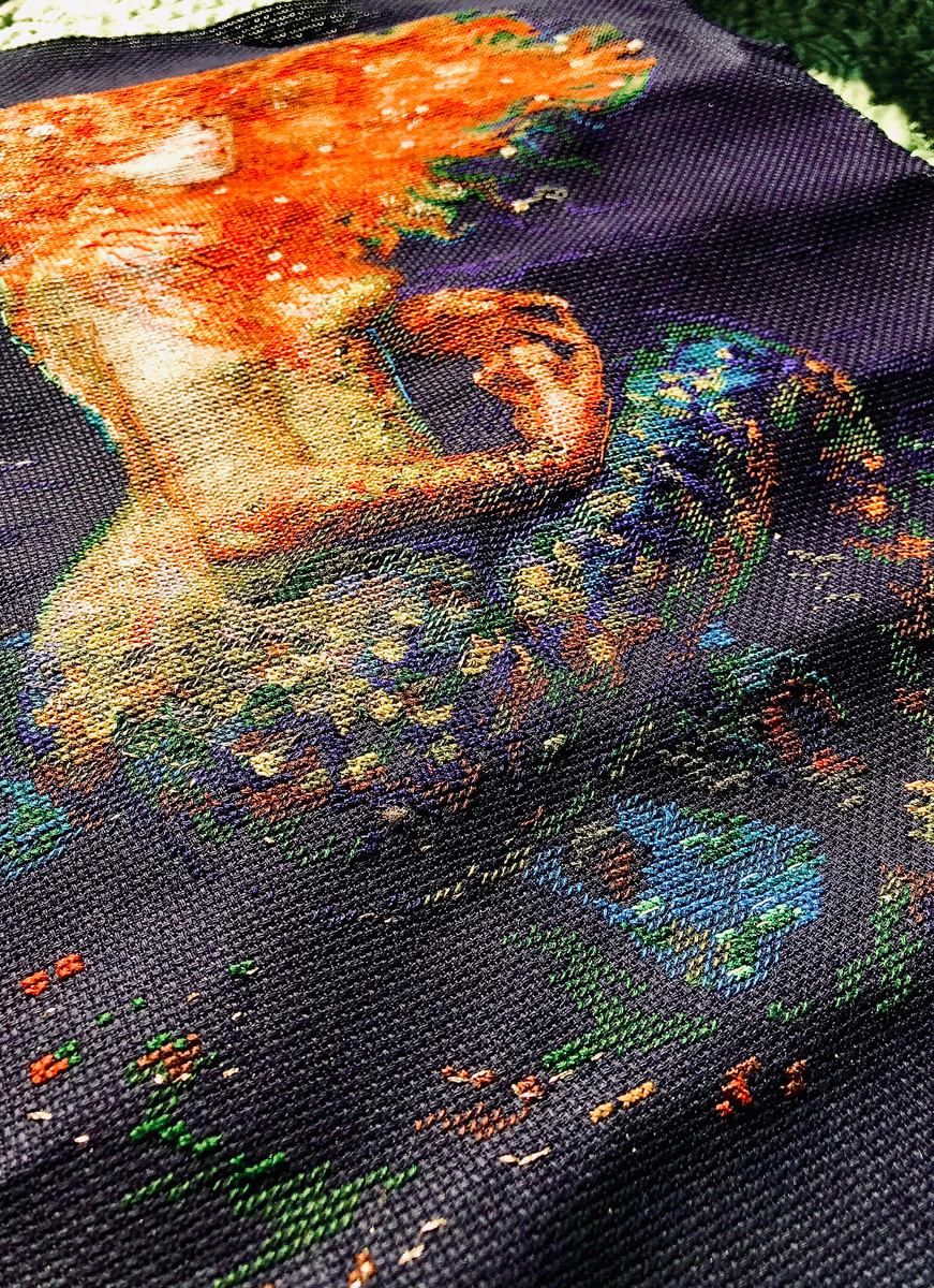 Сегодня она в печали - значит будет вышивать грустные пейзажи, меланхоличные портреты и монохром; завтра она радуется - значит будет вышивать цветы и синее небо; а послезавтра - вообще ничего не будет вышивать.