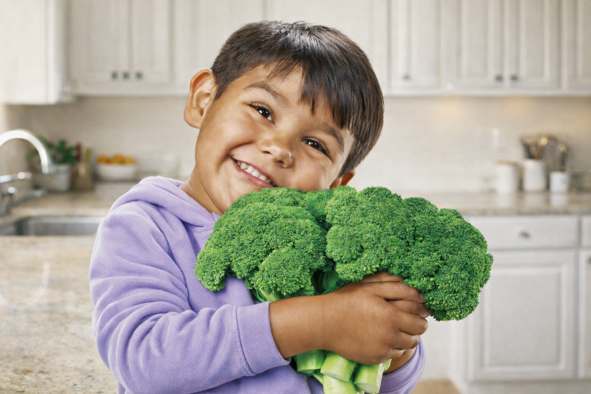 Дошкольники (3–6 лет): воспринимают информацию через игру и наглядность, копируют поведение взрослых, любят яркие цвета и необычные формы, а значит, их легче всего приучить пробовать что-то новое, например, красное яблоко, брокколи как маленькое деревце.