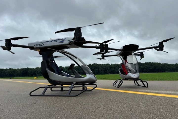 аппарат Velocitor X-1. Выпуск назначен на начало 2027 года. Конструкция обеспечивает вертикальный взлёт и посадку, а также зависание на месте с использованием GPS-стабилизации; максимальная скорость 112 км/ч; продолжительность полёта один час с дополнительным 15-минутным резервом; время зарядки батареи - шесть часов; грузоподъёмность аппарата ограничена 118 килограммами.