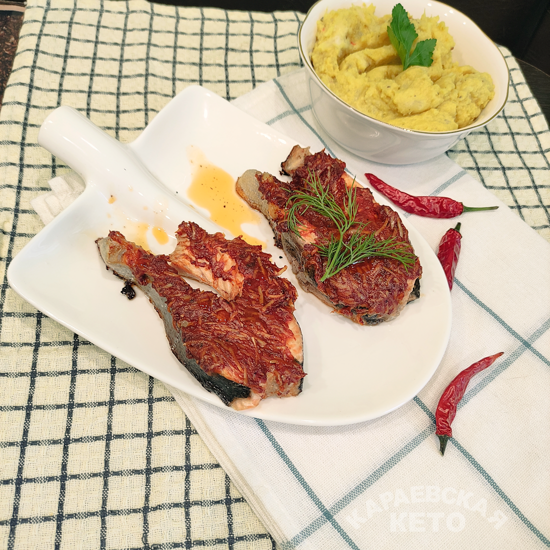 Пикантный вкус за счет домашнего кето кетчупа и сыра. Представляю вам ФОРЕЛЬ ПОД СЫРНО-ТОМАТНЫМ СОУСОМ На 5 средних стейков, вам понадобиться: Кетчуп домашний по кето - 3 ст. ложки