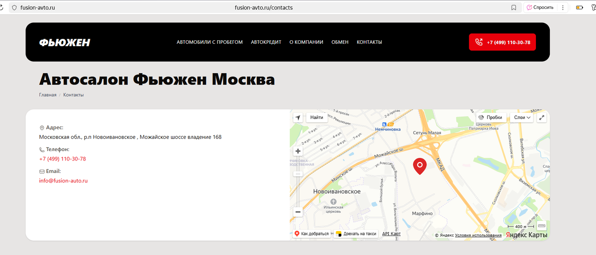 Фьюжен — это автосалон в Москве. Занимается продажей подержанных автомобилей. В его работе есть ряд подозрительных моментов. Больше интересного — в нашем обзоре. В автосалоне на Можайском шоссе владение 168 в р.п. Новоивановское Московской области можно купить автомобиль с пробегом. На сайте размещен онлайн-каталог. Нет достоверных сведений об автомобилях в наличии в выставочном зале. К тому же на сайте отсутствуют верифицированные отчеты о состоянии авто. На основании всего этого мы решили провести проверку. Владельцем автоцентра Fusion Avto является ООО "ПРИУС" (ИНН: 7734480402). Компания зарегистрирована в 2023 году. По юридическому адресу числится еще 135 фирм. Среднесписочная численность сотрудников — 2 человека. Есть признаки компании-однодневки. Владелец дилерского центра Фьюжен Авто проходит гражданскому делу в качестве ответчика. Подробности отсутствуют, заявление оставлено без движения. Об автосалоне Fusion Avto есть отзывы на картах. Отметим, что среди положительных ест