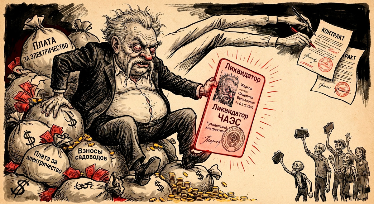 Давайте отвлечемся от банковских выписок, почитайте правду, да, она неприятная, но какая есть. Я перелопатил тонны выписок. Я видел, как сотни тысяч уходят на карты "своим", как снимаются наличные без отчетов, как не платится свет. И у каждого из вас наверняка возникает резонный вопрос: "Куда смотрят органы? И почему вообще выбрали пенсионера, Василия Аркадьевича?" Неужели в нашем СНТ не нашлось крепкого хозяйственника, юриста или просто энергичного мужика, который умеет считать деньги? Ответ циничен до дрожи. Жаркова выбрали не вопреки его возрасту и статусу, а благодаря им. Василий Аркадьевич — это классический "Зиц-председатель Фунт" из "Золотого теленка". Только в наших реалиях он еще надежнее. Вот 3 причины, почему группа "кукловодов" посадила в кресло именно его. Жарков — инвалид 2-й группы и ликвидатор аварии на ЧАЭС. Для любого следователя или прокурора это "стоп-сигнал". Представьте: вскрывается хищение миллионов. Приходит полиция. А перед ними не ушлый махинатор в дорогом кос