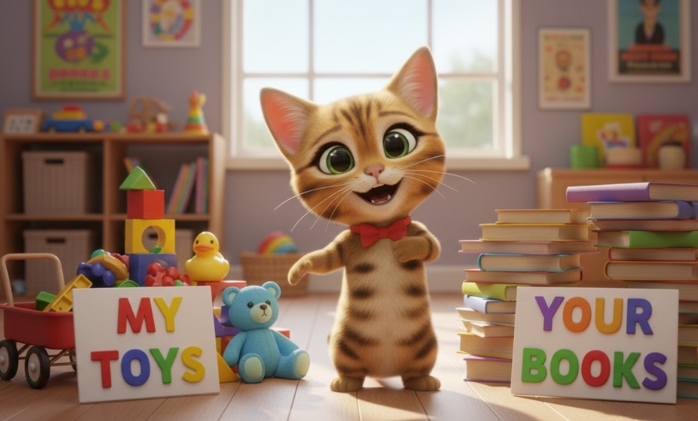 В английском языке есть два вида слов-указателей: Давайте разберем их по парам, чтобы не запутаться! Учить английский спокойно, с уважением к своему ритму жизни — это реально. Я приглашаю на онлайн-уроки, где всё внимание уделяется исключительно вам и вашим целям. Узнать подробности и записаться на занятие можно на моей странице: Обо мне | Цены Каждому Герою соответствует свой Жадина. Посмотрите на эту таблицу и запомните пары: Как не перепутать I и MY? Смотрите на слово, которое стоит рядом! 1. Герой + Глагол (Subject + Verb) Герои (I, He, They) — это действующие лица. Они бегают, прыгают, любят. Они стоят ПЕРЕД ГЛАГОЛОМ. 2. Жадина + Предмет (Possessive + Noun) Слова-жадины (My, His, Their) не умеют делать дела. Они умеют только охранять свои вещи. Они стоят ПЕРЕД ПРЕДМЕТОМ (существительным). Секрет Фани: Нельзя сказать “I friend” (Я друг) или “My love pizza” (Мой л