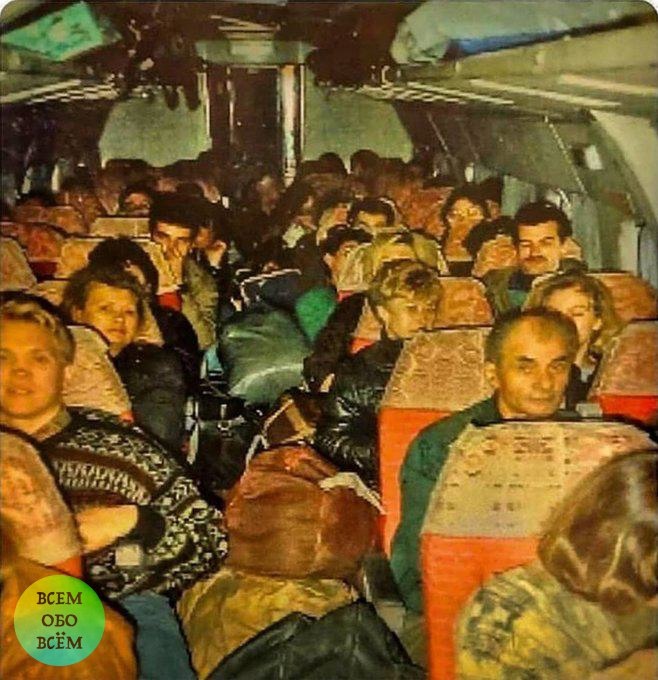 Челноки в салоне Ту–134, 1992 год.