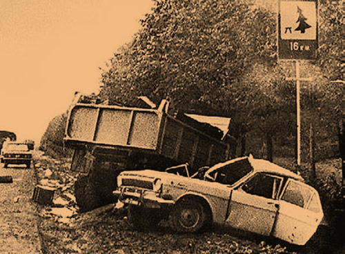 11 апреля 1979 года на 46-м километре трассы Минск — Киев произошла трагедия. Белая «Волга» вылетела на встречную полосу и лоб в лоб столкнулась с грузовиком ГАЗ-53. Водитель легковушки погиб мгновенно. Когда приехала милиция и достала документы, наступила тишина. В водительском удостоверении значилось имя: Леонид Федорович Быков. Любимый всей страной «Маэстро», командир поющей эскадрильи, Максим Перепелица. Человек, который учил нас жить («Будем жить!»), ушел в 50 лет.