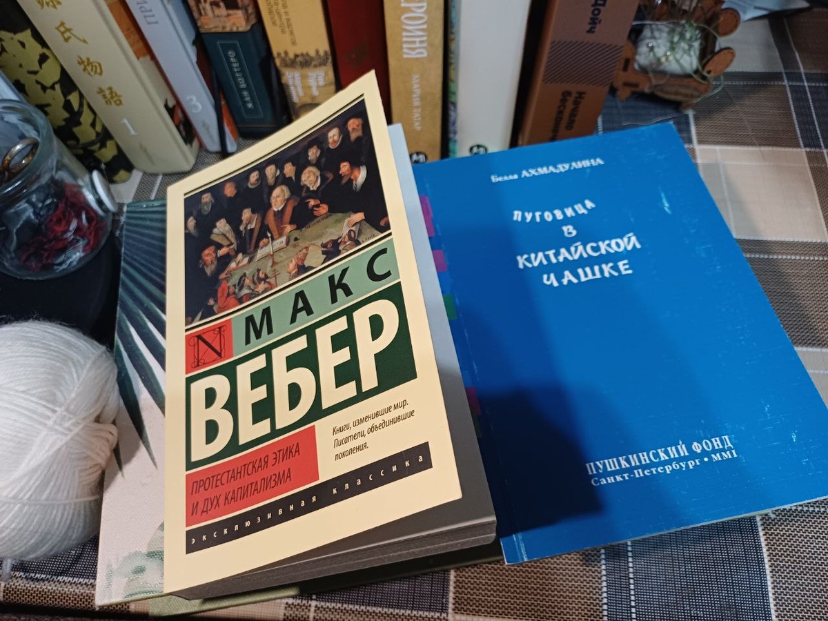 ? Я на этой неделе немножечко взрывала себе мозг Максом Вебером - "Протестантская этика и дух капитализма", которую упоминали буквально все авторы книг о геополитике, что я читала раньше – от Даймонда до Аузана. Идёт сложно (в первую очередь потому, что примечаний там едва ли не больше основного текста и мотаться туда-сюда непросто). Но с истоками так обычно и бывает. Параллельно читала всякое развлекательное и художественное: Очень впечатлилась повестью Натальи Реньжиной "Бабушка сказала сидеть тихо" (впечатления тут) Начала и бросила "Эллиот" Мая Сара - думаю, лет в семнадцать мне бы зашло, но сейчас нетакусики меня цеплять перестали, а игры на выживание в принципе не мой жанр. Читала/слушала "Копия неверна" Татьяны Дыбовской - в целом понравилось, но хотелось бы или больше внятных ответов или продолжения истории - надеюсь, оно будет (про нее тут). Вчера перед сном открыла сборник поэзии "Пуговица в китайской чашке" Беллы Ахмадулиной - очень поздней и зрелой, не той, к которой