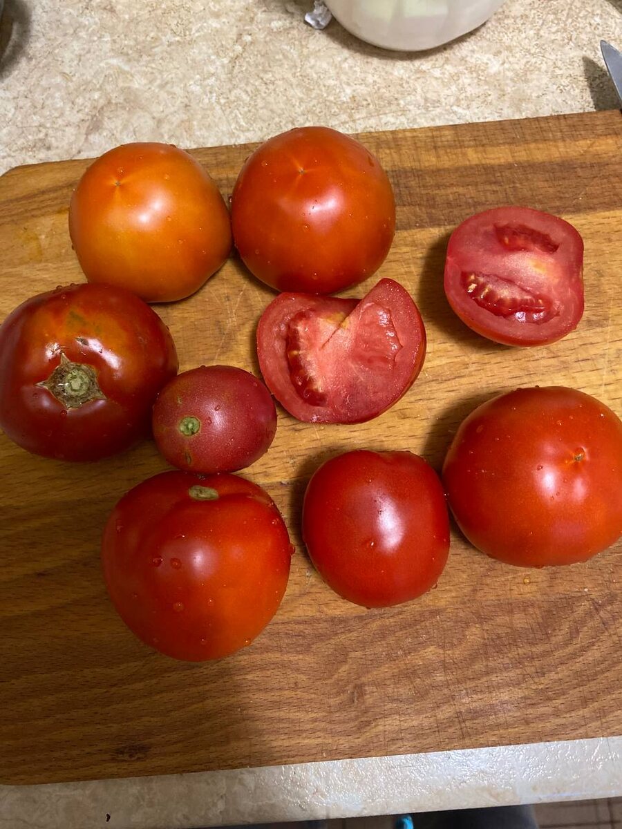 Нарезаем помидорки средним кубиком. Представьте: сочная мякоть, лёгкая кислинка — ммм!