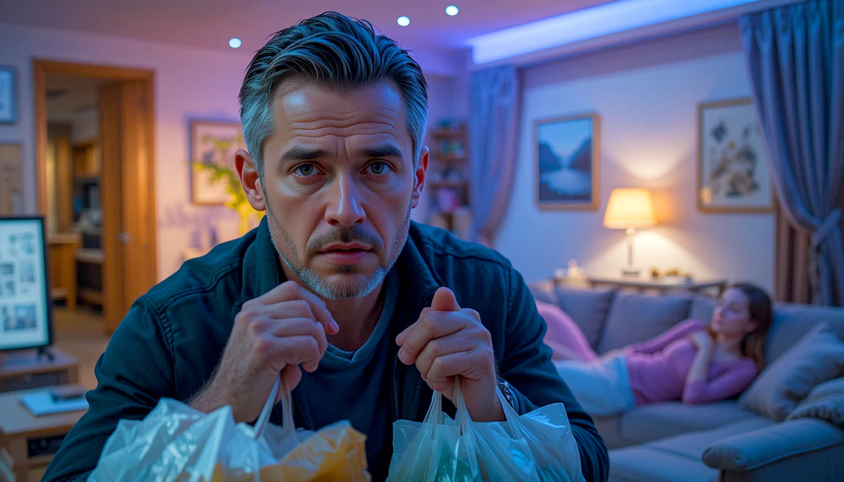 На экране тут же заплакала какая-то актриса с ресницами, как у лошади на празднике, а у меня в руках повис пакет из магазина — тот самый, где курица по акции, макароны «рожки» и молоко «срок нормальный, но не спорьте». Пакет резанул пальцы, и я понял, что если сейчас не поставлю его на пол, то он выпадет вместе со мной.