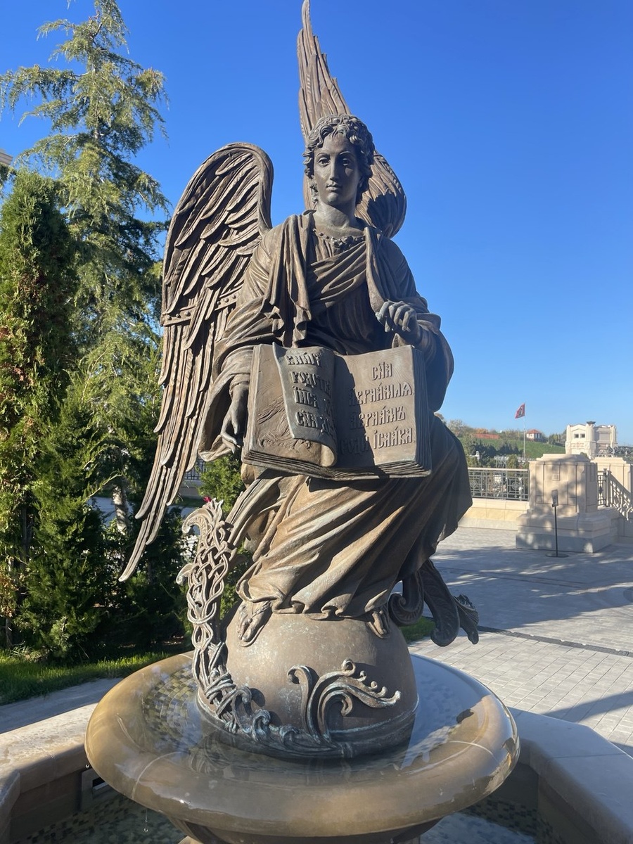 Фонтаны в парке тематические, религиозные, представляют евангельский тетраморф. Перед нами - ангел, символ апостола Матфея
