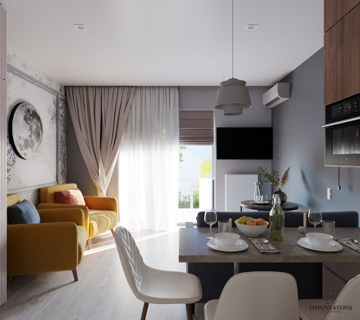 Мы все знаем, как это бывает: отпуск короткий, дни на вес золота, а хочется - чтобы именно эти несколько суток ощущались как маленькая жизнь. Не временное убежище, не «переночевать и дальше», а пространство, которое сразу включает режим отдыха. Поэтому в дизайне отпускных квартир экономия на комфорте - самая невыгодная стратегия. В этом проекте я ставила перед собой простую задачу: создать интерьер, который не требует времени на «привыкание». Ты входишь - и тело само делает выдох. Сочетание мягких оттенков, спокойных линий и продуманного света работает как визуальный антистресс. В каждой зоне - от прихожей до кухни - есть ощущение завершённости, будто пространство говорит: «тебя здесь ждали». Я сознательно использовала приёмы, которые обычно применяют в постоянном жилье: Отдельное внимание - кухне и столовой зоне. Даже если гости готовят всего пару раз за отпуск, важно, чтобы это было приятно, удобно и красиво. Хорошая кухня — это не про «частоту использования», а про ощущение заботы.