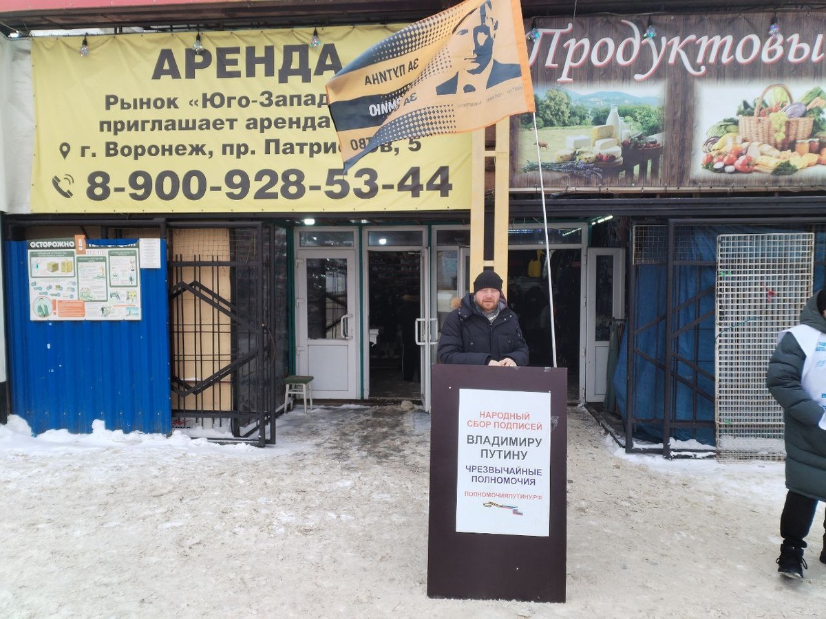 08 февраля 2026 активисты Воронежского Штаба НОД Воронеж-Юг провели одиночный пикет у Юго-Западного рынка г.Воронежа в поддержку реформ