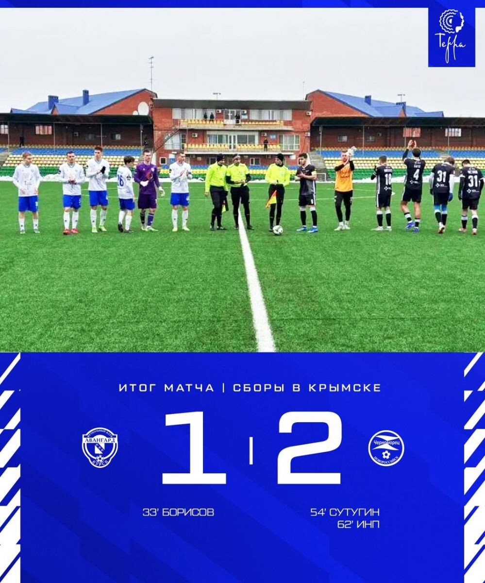 В заключительном контрольном поединке первого тренировочного сбора в Крымске футболисты курского «Авангарда» со счётом 1:2 уступили команде «Черноморец» из Новороссийска. Первый тайм прошёл в равной и преимущественно позиционной борьбе. Первыми опасный момент создали футболисты «Авангарда», но реализовать его не смогли. На 33-й минуте игроки «Черноморца» вышли вперёд: после подачи с фланга отличился Борисов. После перерыва курская команда, сделавшая ряд замен, попыталась переломить ход игры и отыграться. Однако на 54-й минуте новороссийцы нарастили своё преимущество после гола Сутулина. «Авангард» на 62-й минуте сравнял счет. В оставшееся время команда искала шансы для второго гола, но точная игра защитных линий «Черноморца» не позволила сравнять счёт. 0+