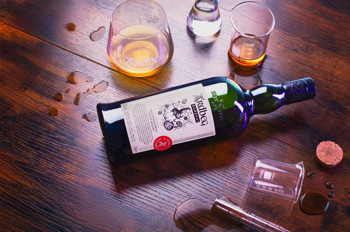 Ограниченный юбилейный релиз, представленный публике накануне 25-летия "Комитета Ардбег" (международный фан-клуб дистиллерии). За год до выпуска релиза винокурня попросила группу "самых преданных комитетчиков" вслепую отобрать из предложенных пяти "секретных" образцов - два лучших. Фаворитами стали выдержанный в рефильных экс-бурбонных бочках виски на основе не просто обкуренного солода, а глубоко обжаренного ("чёрного"). И второй - выдержанный в экс-хересных бочках дистиллят. Из комбинации этих победителей и была произведена "Eureka!". Управляющий на тот момент винокурней Колин Гордон рассказал позже, что Ардбег Эврика являет собой смесь дистиллята Ardbeg Ardcore (выдержанного "подольше" оригинала) - и спиртов Ардбег, зревших в испанских бочках из-под хереса Педро Хименес. Выдержка составляет 6,7,8 - 10 лет. Лично я не вижу ничего такого удивительного в том, что выдержанный на пару лет дольше Ardbeg Ardcore стал лучше, а в купаже с хересным дистиллятом, возможно, - ещё лучше. То есть