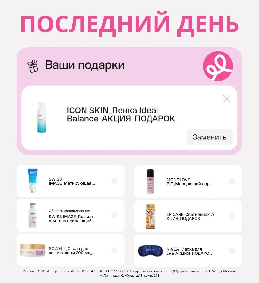 🎁 Сегодня — финальный день, когда Подружка раздает подарки за онлайн-заказы от 700 ₽ по промокоду 👉🏻