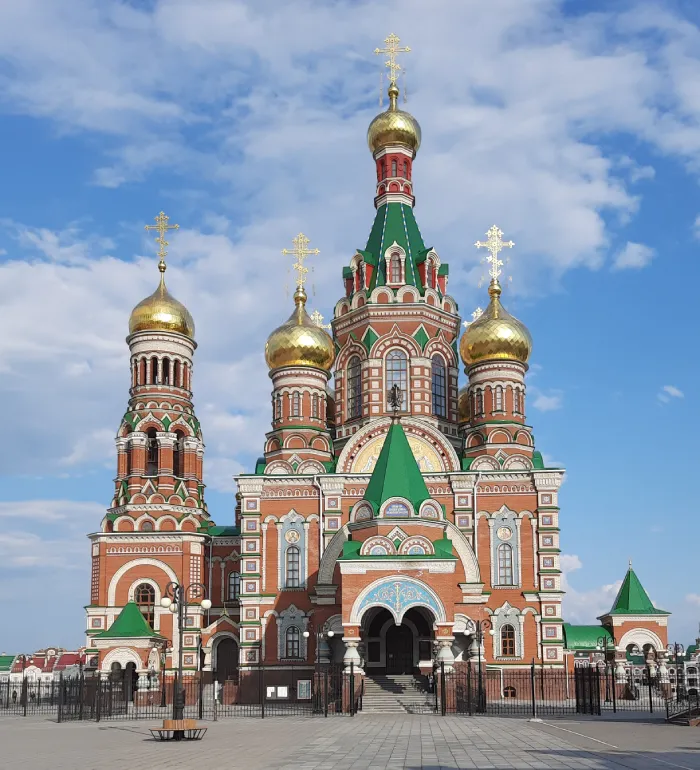 Путешествуя по Марий Эл на машине, мы не могли пропустить многочисленные православные церкви и храмы, встречающиеся нам по пути. Это было традицией наших путешествий. Первые храмы повстречались нам при осмотре достопримечательностей Йошкар-Олы в самом центре города, на Воскресенской набережной.