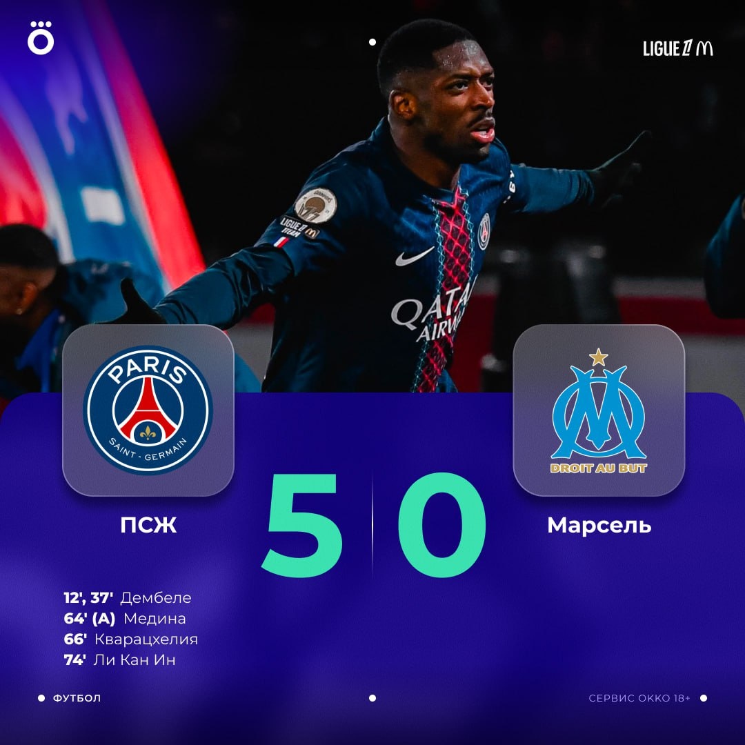 👊🏻 «ПСЖ» размазал «Марсель». Дембеле оформил 2+1, а у Сафонова сухарь.