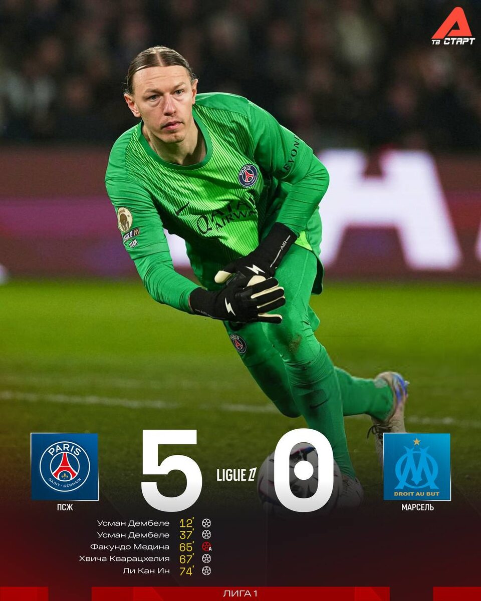 «ПСЖ» безжалостно разгромил «Марсель». В ворота гостей влетели пять безответных мячей. Парни из «Марселя» бросили все силы на Кубок Франции? 😏 Подписывайся на ТВ СТАРТ в MAX📲