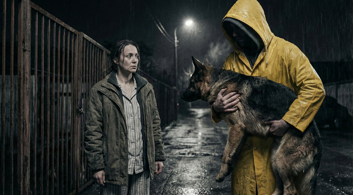 Я подошла ближе. Собака не двигалась. Немецкая овчарка, крупная, с тёмной мордой. На боку – тёмное пятно. Я не сразу поняла, что это кровь, потому что дождь размывал всё.