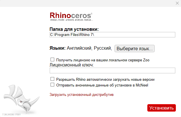 Инструкция составлена на примере установки Rhinoceros 7 и Rhinoceros 8, взятых с оффициального сайта. Лечение программ будет производиться универсальным активатором с сайта CG Persia. Потребуется VPN для пункта 2, 3 и 4. 1. Создать две папки, местоположение не имеет значения 2. Скачать англоязычный Rhinoceros #.exe с официального сайта в соответствующую папку. 3. Запустить Rhinoceros #.exe от имени администратора После завершения загрузки в папке, из которой запускался Rhinoceros #.exe появятся следующие элементы: 4. (Повторно) Запустить Rhinoceros #.exe от имени администратора Повторяем пункт 3, вместо "Загрузить установочный дистрибутив" выбираем "Установть" 5. После завершения установки не перезагружать компьютер и не запускать Rhinoceros. 6. Повторить процесс установки для остальных версий Rhinoceros с пункта 3. Лекарство для лечения Rhinoceros мы будем скачивать из очень старого источника под названием CG Persia, к сожалению регистрация на ресурсе давно закрыта и брать мы его бу