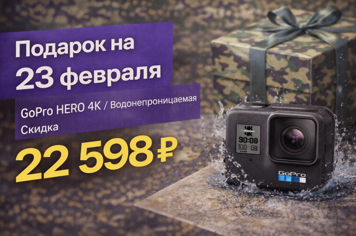 Экшн-камера нужна не “чтобы лежала”, а чтобы вы реально начали снимать: поездки, спорт, прогулки, семейные моменты — без страха за телефон, воды и падений. GoPro HERO (2024) (её часто называют HERO 4K, потому что “4K” написано на коробке и так указывают ритейлеры) — это компактная 4K-камера “включил и снял”, максимально простая и лёгкая. По вашей цене сейчас 22 598 ₽, старая 90 200 ₽ — скидка очень большая, поэтому ниже дам не только “почему стоит”, но и что обязательно проверить перед оплатой, чтобы не попасть на неприятности. ✅ Водонепроницаемость без бокса — до 5 метров (16 ft).