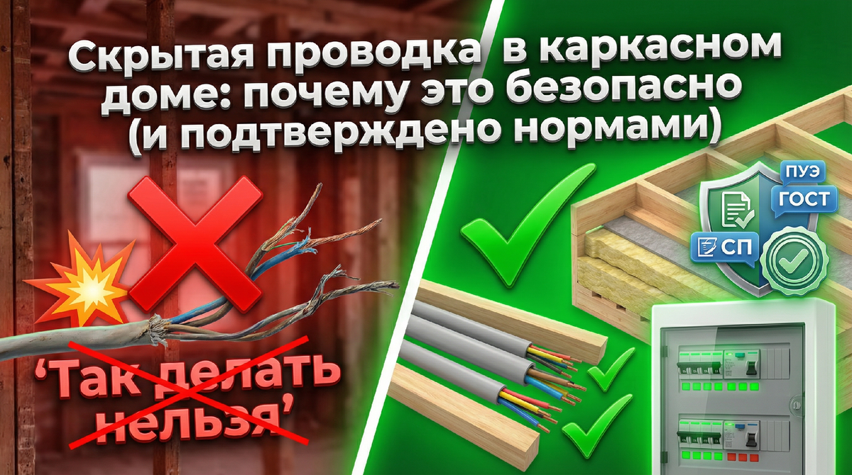 Миф о том, что скрытая проводка в каркасном доме «опасна», держится только на незнании.