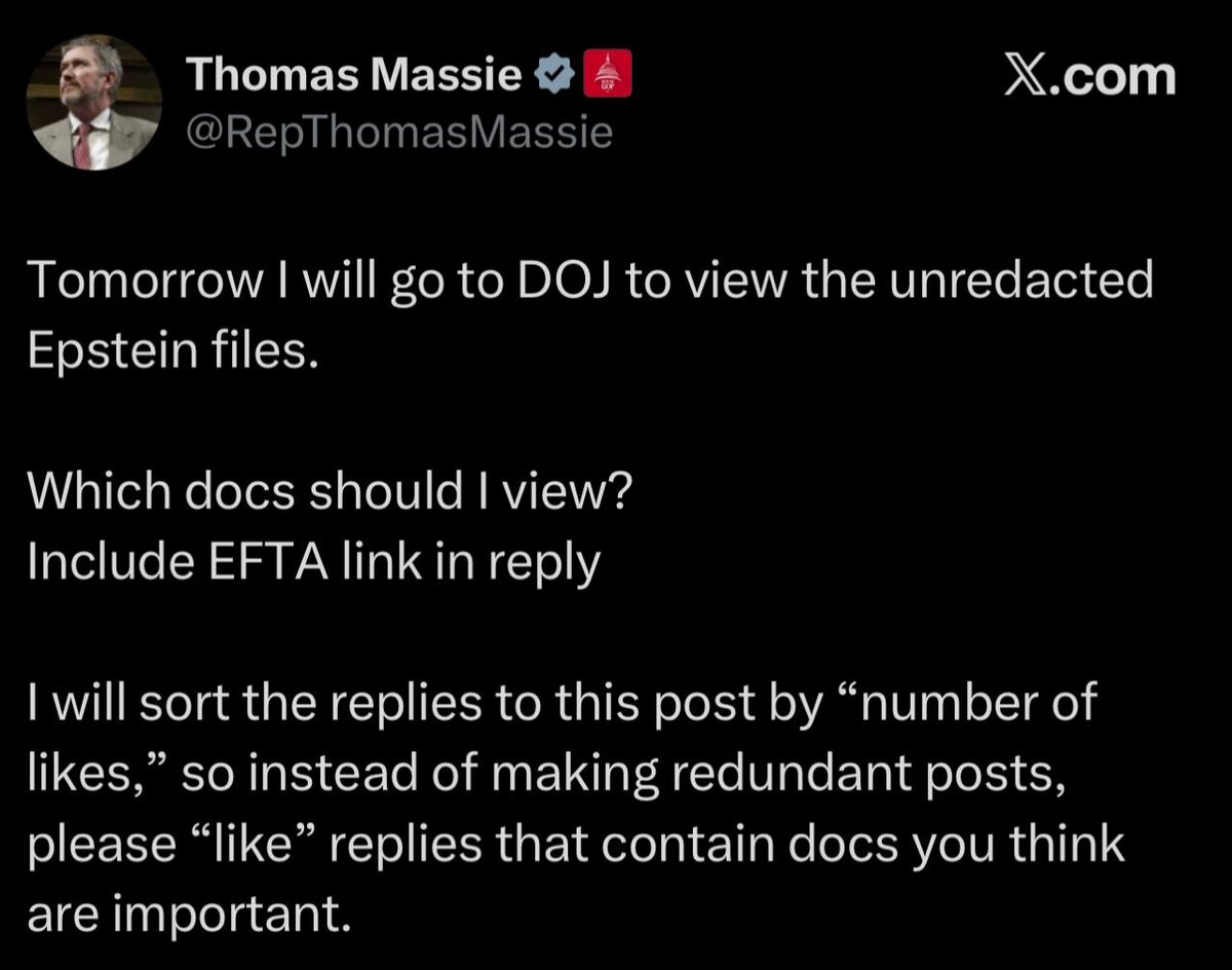 Rep Massie to view UNREDACTED Epstein files