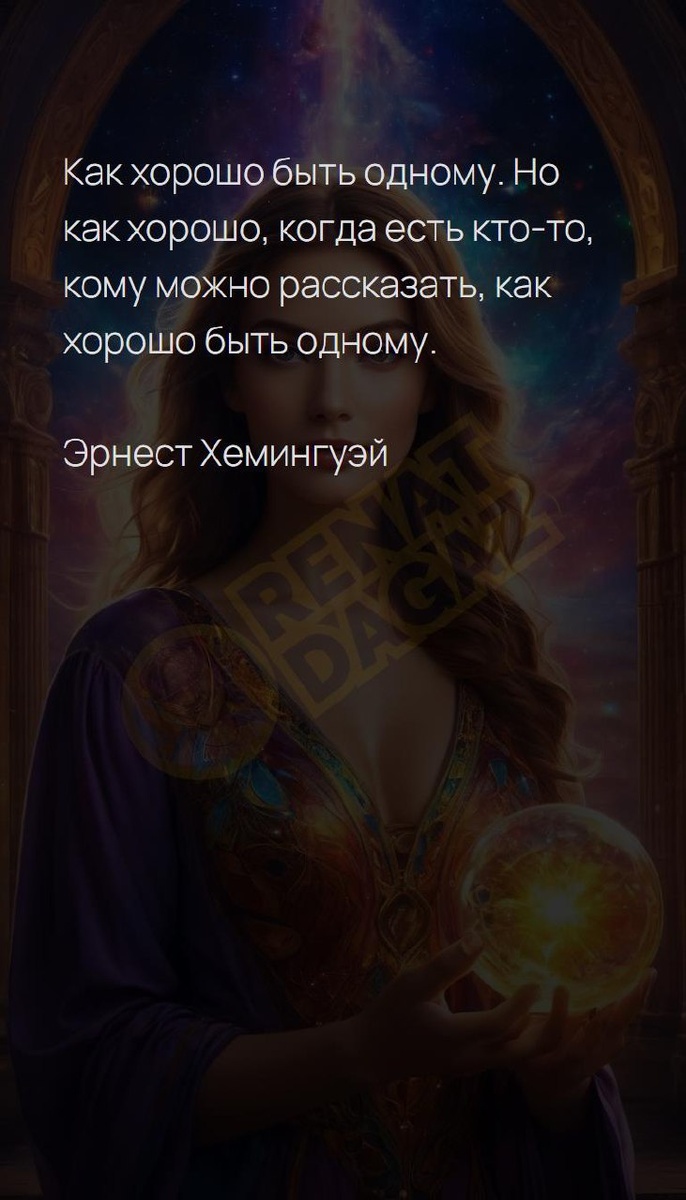 Но как хорошо, когда есть кто-то, кому... Как хорошо быть одному. Но как хорошо, когда есть кто-то, кому можно рассказать, как хорошо быть одному. Эрнест Хемингуэй Архитектура вашей души | Ваш Ангел и Демон T | VK | Pin | YouTub | Dzen #заботаосебе #любовьмиру #знакисудьбы #берегисебя #светлыйпуть #шанс #любовьмиру #день #денежныйпоток #9число #9февраля