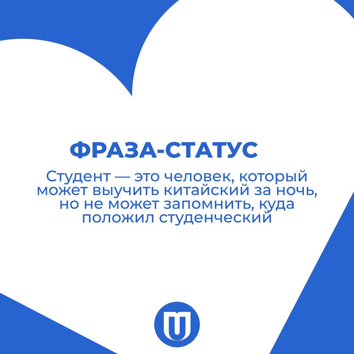 ! Пусть пары будут интересными, дедлайны — мягкими, а кофе — бесконечным 💙 Мы подготовили для вас карточки-статусы про студенческую жизнь — чтобы вы могли честно показать, в каком состоянии зашли на пару 😌 Если не нашли — напишите свой статус в комментариях 👇 👻 МАХ | 💙 ВК | 📝 ДЗЕН