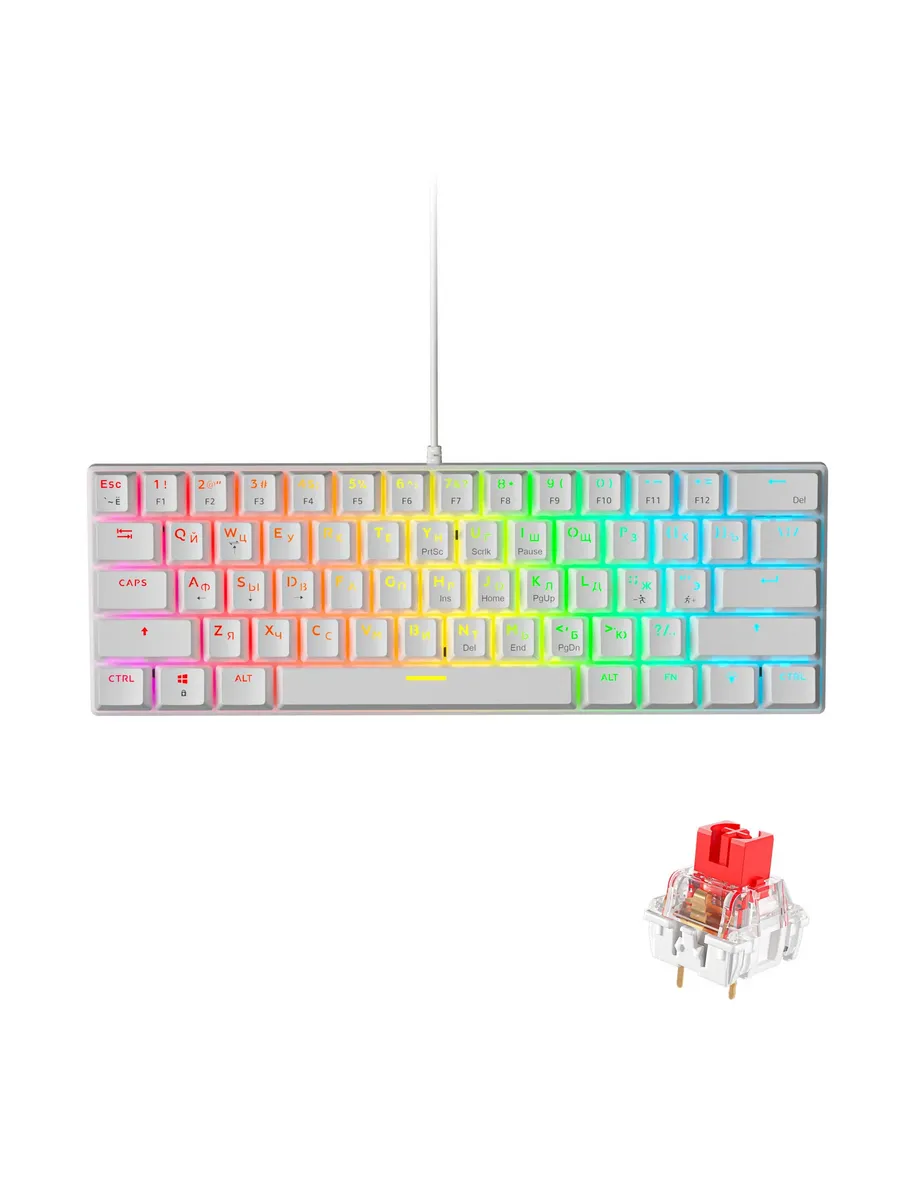 - Эстетика и Стиль: Белый цвет корпуса придает клавиатуре современный и минималистичный вид, который легко впишется в любой интерьер и станет ярким акцентом на вашем рабочем столе.