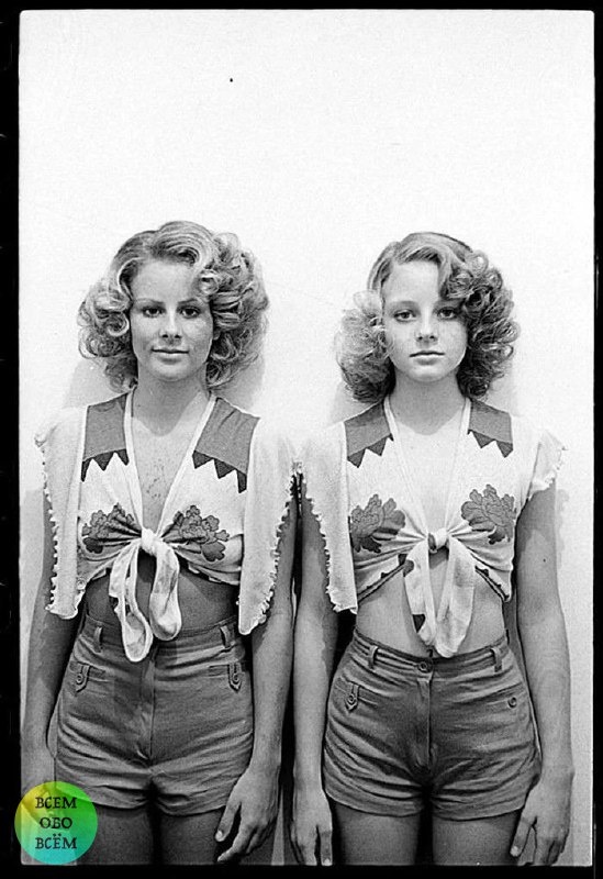 14-летняя Джоди Фостер (справа) и ее 19-летняя сестра Конни, которая играла за нее в откровенных сценах, на съемках "Таксист", 1976 год
