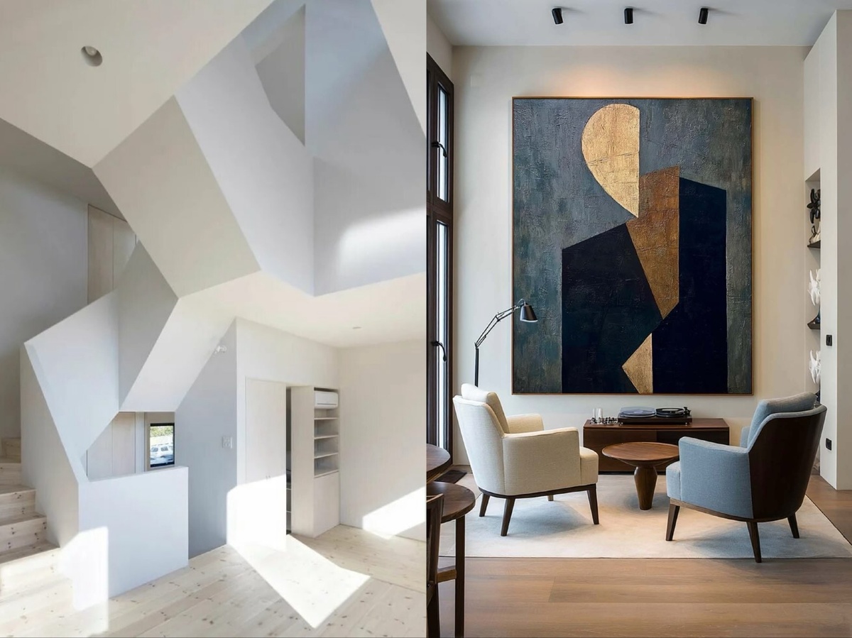 Когда мы слышим «кубизм», в голове сразу возникают образы Пикассо и Брака, их работы, разбивающие привычные формы на множество граней. Но кубизм – это не только про геометрию. Это про взгляд на мир под разными углами одновременно, про деконструкцию и переосмысление реальности. Это про то, как увидеть привычное в совершенно новом свете. Именно эта многогранность и делает кубизм таким актуальным для современного интерьера. Он позволяет нам отойти от строгих правил и создать пространство, которое отражает вашу индивидуальность, вашу смелость и ваше видение мира. 📱Главное правило при интеграции кубизма в интерьер – это гармония. Картина в стиле кубизм не должна быть просто декоративным «дополнением». Она должна стать ядром, вокруг которого строится всё остальное. Её цветовая палитра, её композиция, настроение – всё это должно найти своё отражение в интерьере. 📱Если картина насыщена яркими, контрастными цветами, то и в интерьере могут появиться смелые цветовые акценты. Это могут быть п