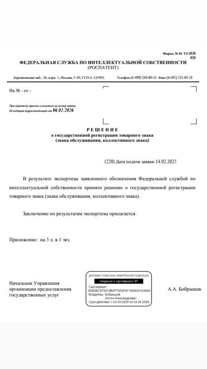 Когда открываешь письмо - а там решение Роспатента о регистрации товарного знака. Для меня, как для юриста - это финал большого пути, где ничего не было случайным. Каждый такой документ - это не просто бумага с печатью. Это результат правильных вопросов, которые мы задали ещё до подачи заявки, аккуратной юридической подготовки и понимания, как именно Роспатент будет смотреть на обозначение. В нашем юридическом агентстве «КРЕДО» мы искренне верим в простую вещь: чем сильнее юридическая подготовка - тем быстрее и спокойнее проходит регистрация. Без суеты и бесконечных запросов и доработок. Почему вообще важно регистрировать товарный знак? Потому что без регистрации бренд - это просто идея. А с регистрацией - юридически защищённый актив. Товарный знак даёт право: — официально использовать название и логотип; — запрещать другим копировать или паразитировать на бренде; — спокойно масштабироваться, продавать, выходить в маркетплейсы; — чувствовать себя уверенно, когда бизнес начинает расти