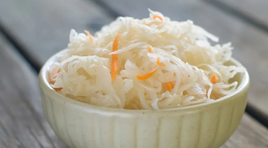 Идеальный состав: капуста белокочанная, соль. Допустимо: морковь, клюква, тмин, укроп.
