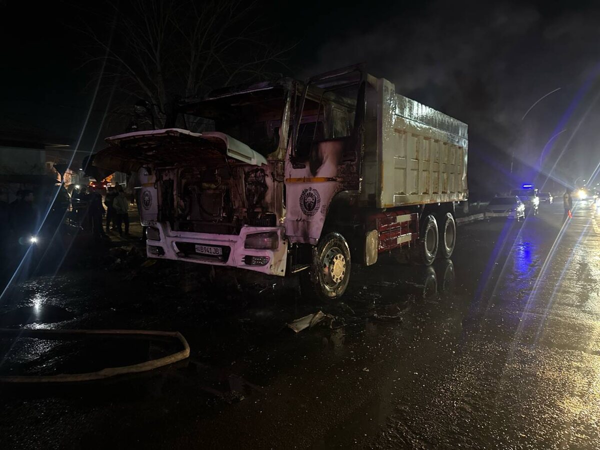 В Андижанском районе загорелся грузовик HOWO, пострадавших нет