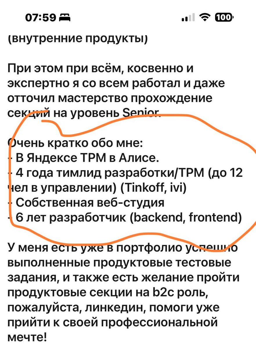 Хотя опыт реально крутой, я подсветил его навыки. Удачи парню, но это очень странно... Знаете, а я бы взял на работу (продактом) человека, скажем, лет 45+, который был бит-перебит в бизнесе много раз. Видел все и вся. И пох на эйджизм... Русский ИТ бизнес