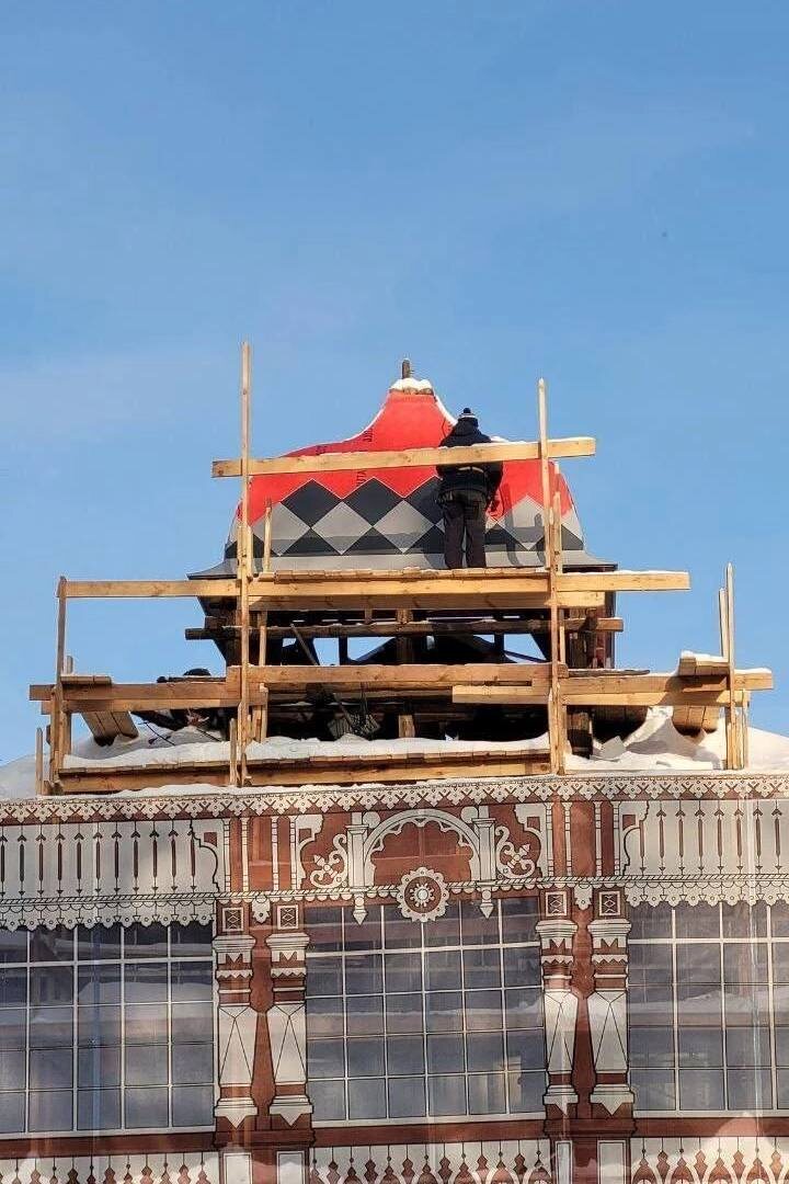 ПАРКЕ МОНТИРУЮТ ШАШКИ. МОЖЕТ НЕ НАДО?.. Несмотря на то, что в Рязани 9 января в Нижнем горпарке обрушился Летний клуб Благородного собрания, реставрация там продолжается. На крыше-шатрике начали монтировать шашки. Окончательно определилась и цветовая гамма будущей крыши. Авторский надзор утвердил два оттенка: серый (близкий к Pural matt RR22) и тёмно-серый (близкий к Pural matt RR23). Материал – оцинкованный металл с полимерным покрытием от Ruukki, который обеспечит долговечность. Как пояснил директор по реставрационным работам генподрядчика Александр Березин, точную историческую палитру восстановить сложно – в архивах только чёрно-белые фотографии. Но на них чётко видно, что шашки контрастировали: одни были светлее, другие темнее. Современное решение – дань уважения этому оригинальному замыслу. Шатрик – это высокая шатровая крыша-купол, главный визуальный акцент здания. Именно его «шашечный» рисунок делает облик Летнего клуба уникальным. К тому же здание является объектом культ